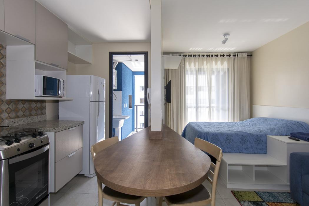 Studio mobiliado com 36 m², localizado no 19º andar do edifício Champagnat 2540 (Rua Padre Anchieta, 2540 – Bigorrilho, Curitiba/PR). Com face oeste, o ambiente recebe boa iluminação natural no período da tarde e oferece uma vista agradável para a quadra do condomínio.