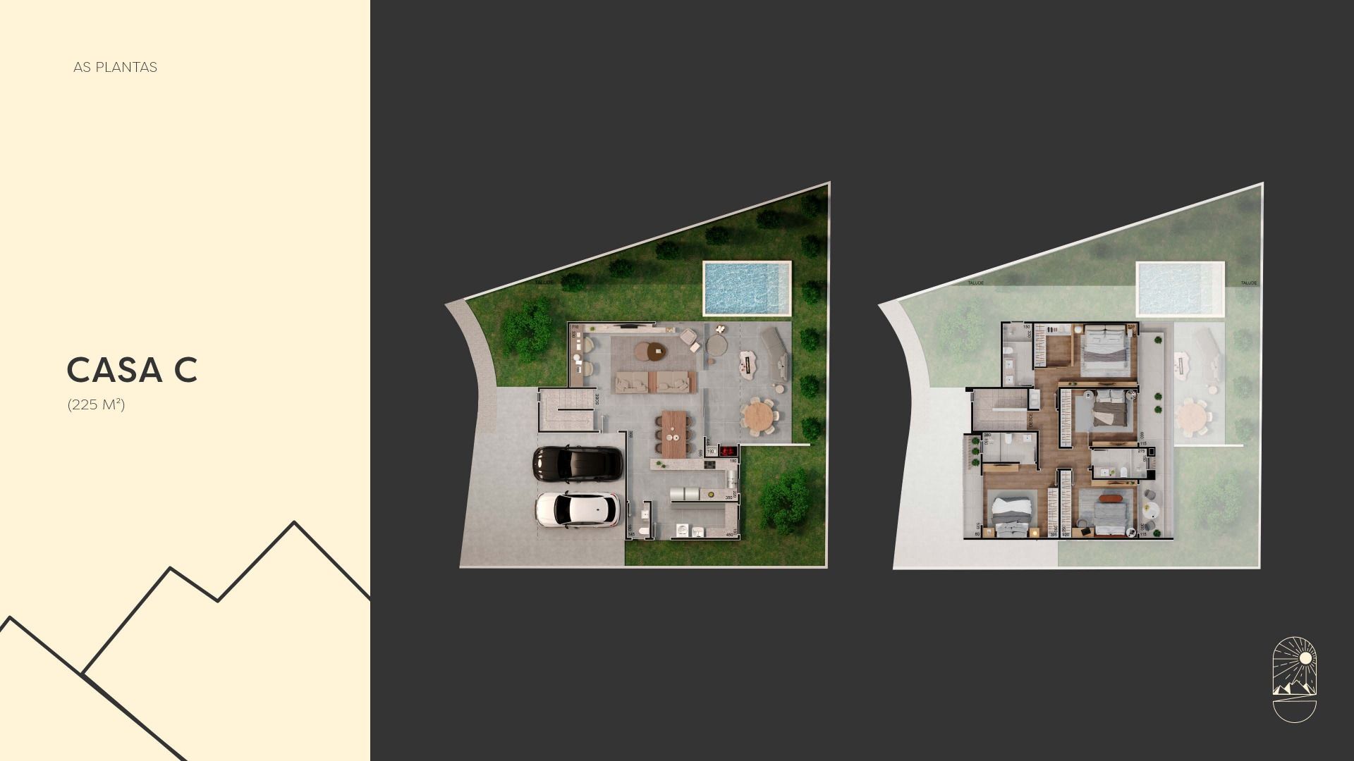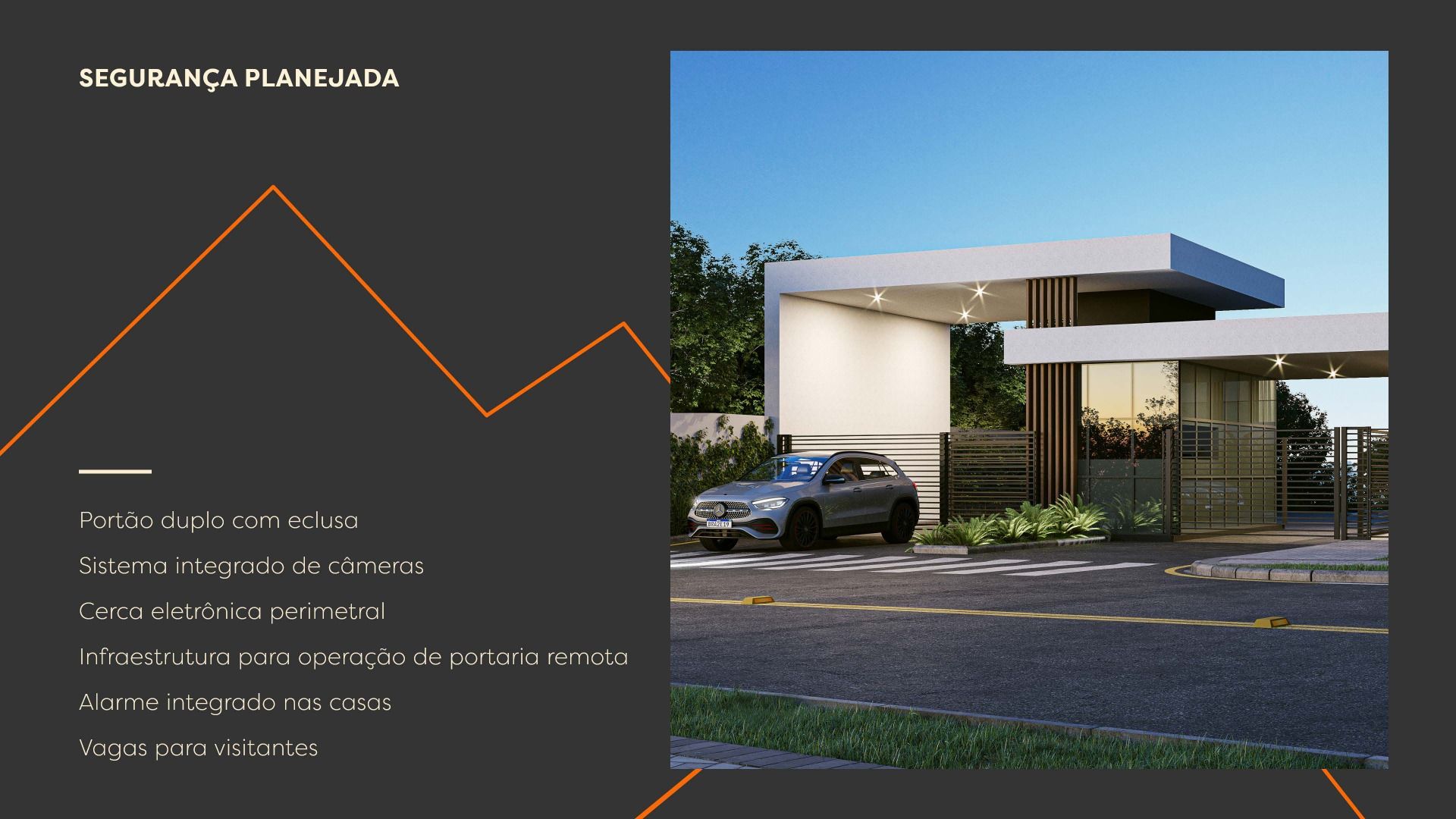 As diversas opções de casas com fachadas e plantas distintas tornam a sua casa mais exclusiva, a medida que o condomínio não terá 21 casas iguais.