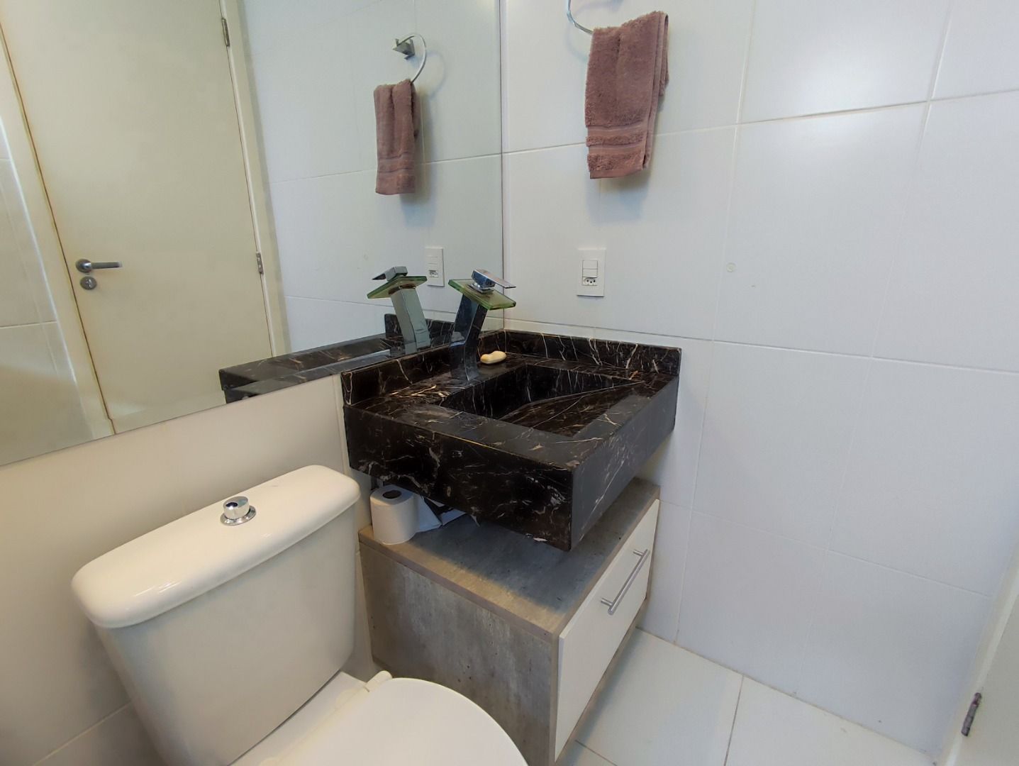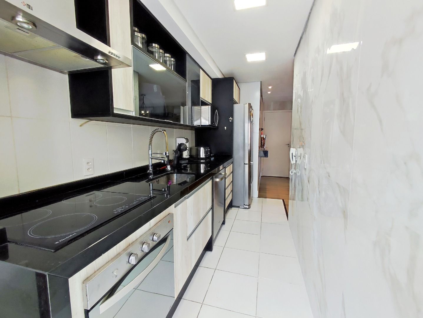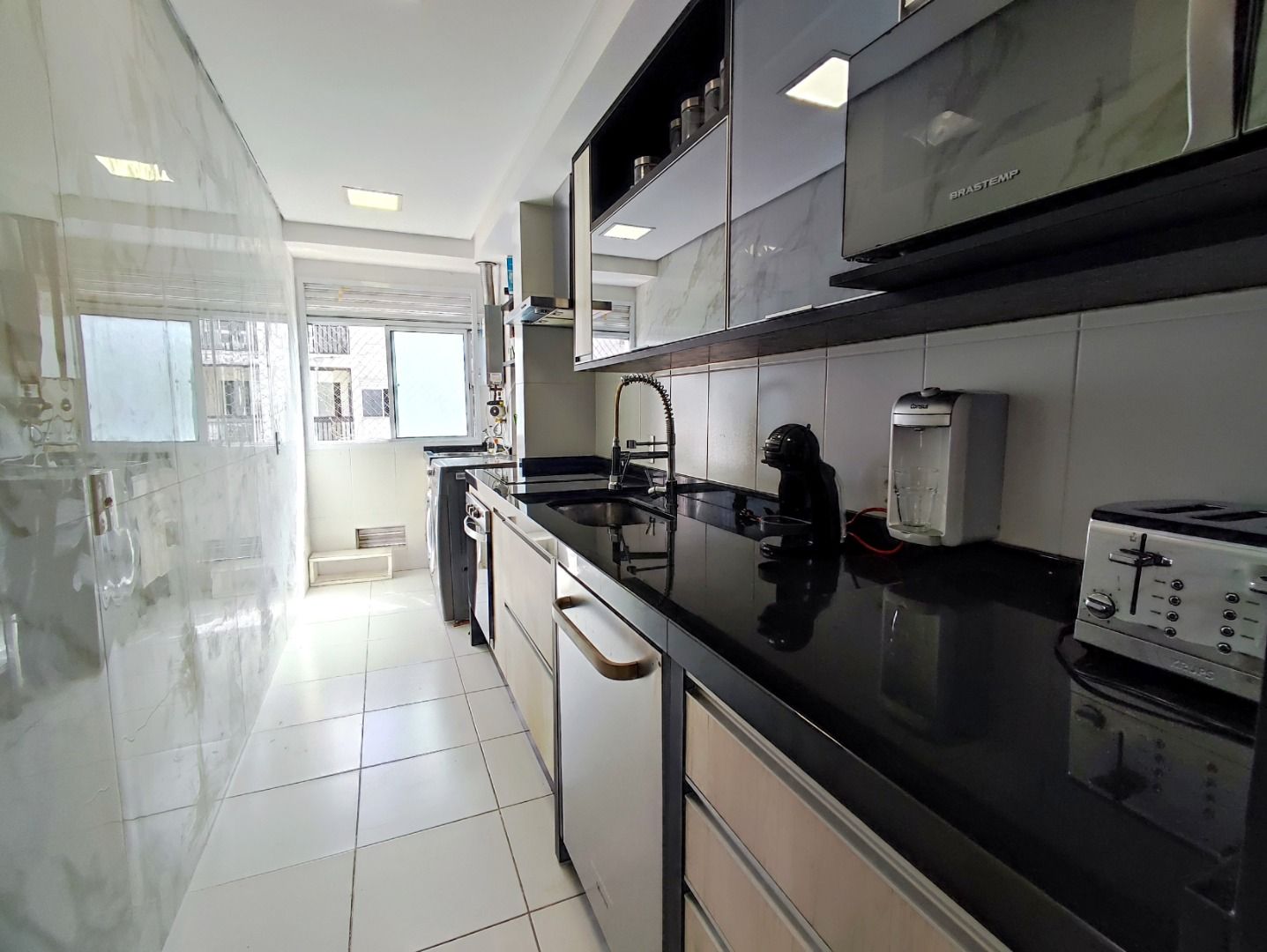 São 2 quartos, sendo 1 suite, banheiro social, cozinha e area de serviço integrados, sala para dois ambientes, sacada com churrasqueira a carvão e uma vista livre.