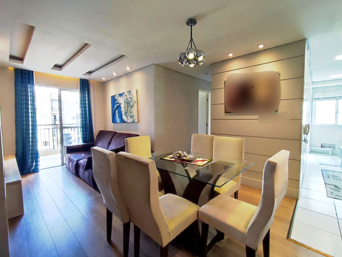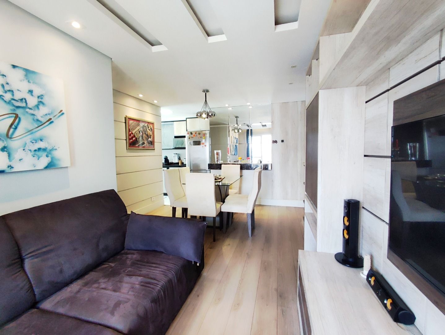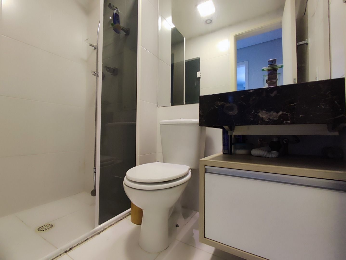 São 2 quartos, sendo 1 suite, banheiro social, cozinha e area de serviço integrados, sala para dois ambientes, sacada com churrasqueira a carvão e uma vista livre.
