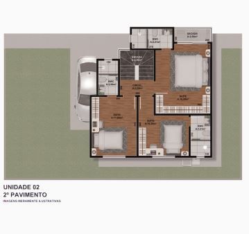 As unidades tem 140,75 m2 de area construída e são compostas por sala ampla, integrada com a cozinha, lavabo, lavanderia, 2 vagas descobertas, 3 suites, sendo a master com sacada e terraço superior amplo, com banheiro. Sobrados com ótimo acabamento: Escadas com acabamento em granito verde labrador; Piso com acabamento em Porcelanato 12080; Aquecimento a gas na cozinha e banheiros (opção elétrico); Janelas em esquadrias de alumínio com veneziana; Preparação para ar condicionado em sala e quartos; Terraço Amplo com area coberta e descoberta; Churrasqueira no terraço. Vaga de garagem para 2 carros Design contemporâneo e arrojado.
