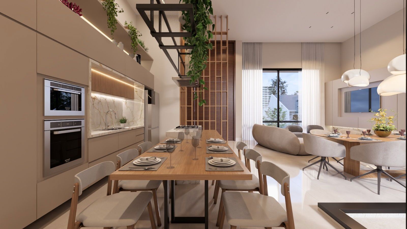 Aqui apresentamos a casa 1 (localizada a esquerda para quem olha da rua), com 198 m2 e 3 quartos, sendo 1 suite e 2 demi-suites, piscina privativa, sala integrada com espaço gourmet e integração total: area social + piscina + quartos. Praticidade e conforto em um so plano. 4 vagas, sendo 2 cobertas. A localização é privilegiada. Dá so uma olhada na figura do anuncio que mostra a localização!