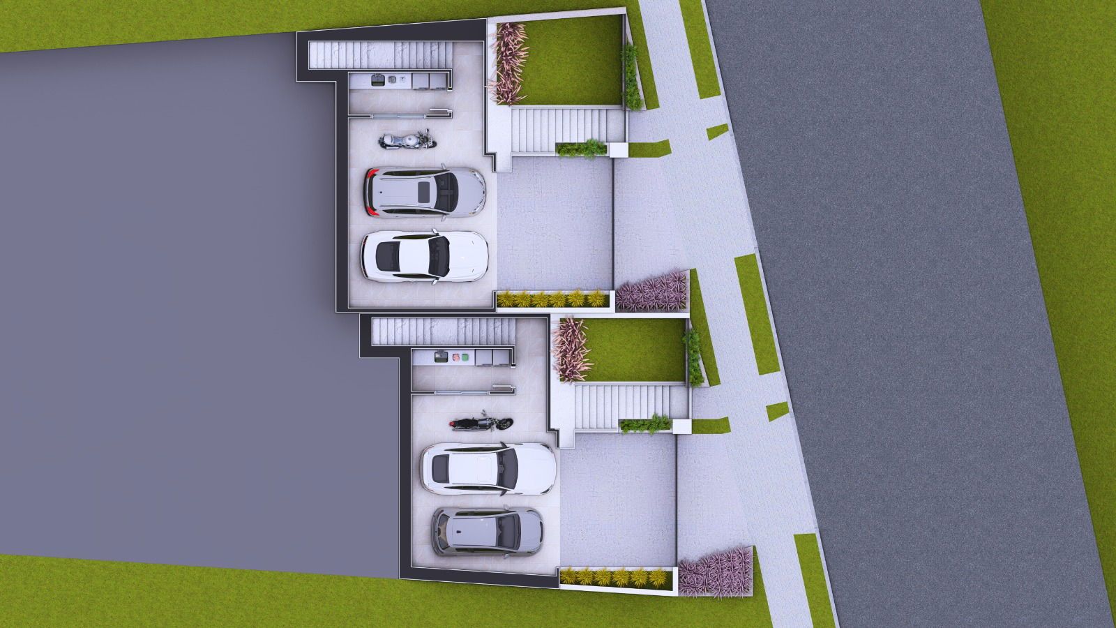 Casa 1 (a esquerda) com 198m2 e casa 2 (a direita) com 207 m2 (já vendida).