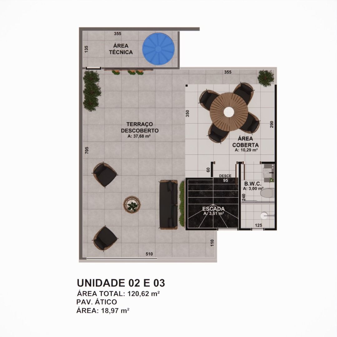 Ático: Area coberta multi uso com lavabo; Churrasqueira; Espaçoso Solarium com vista.