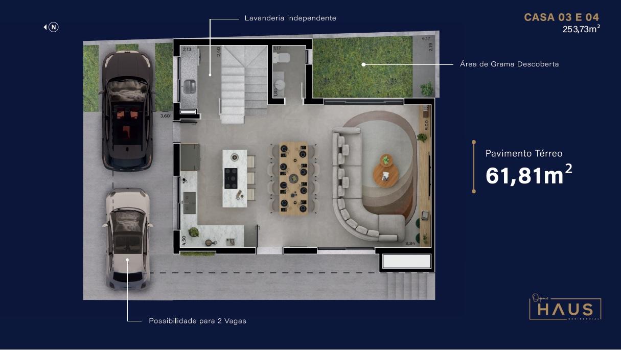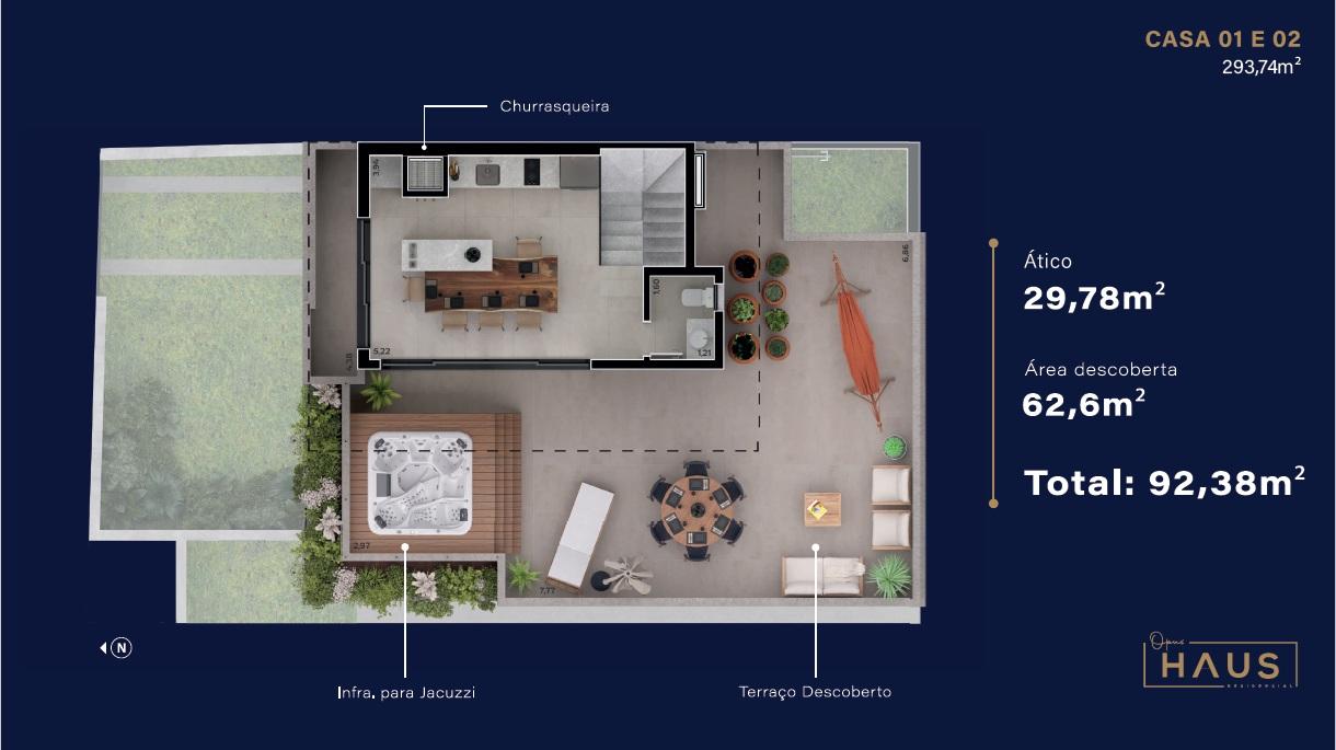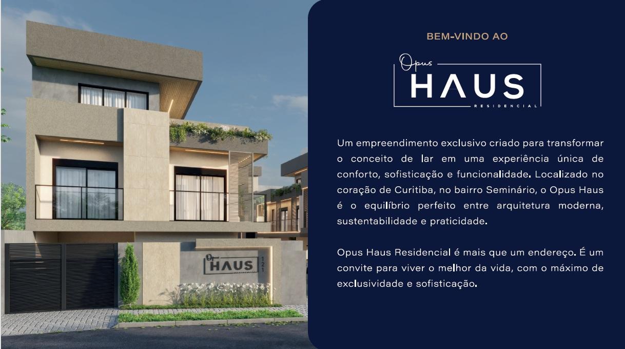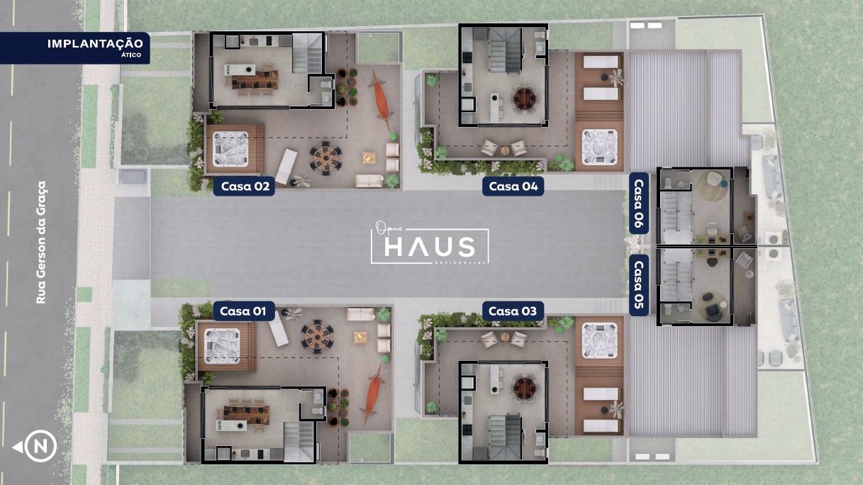 O Opus Haus é um condomínio exclusivo, com ótima localização, em fase final de construção. São apenas 6 casas, sendo as casas 1 e 2 de frente para a rua e com acesso exclusivo. As casas 3 e 4 internas e laterais ao condomínio, com acesso pela via interna central. As casas 5 e 6 localizam-se ao fundo, também com acesso pela via interna e garagens subterrâneas em subsolo exclusivo.