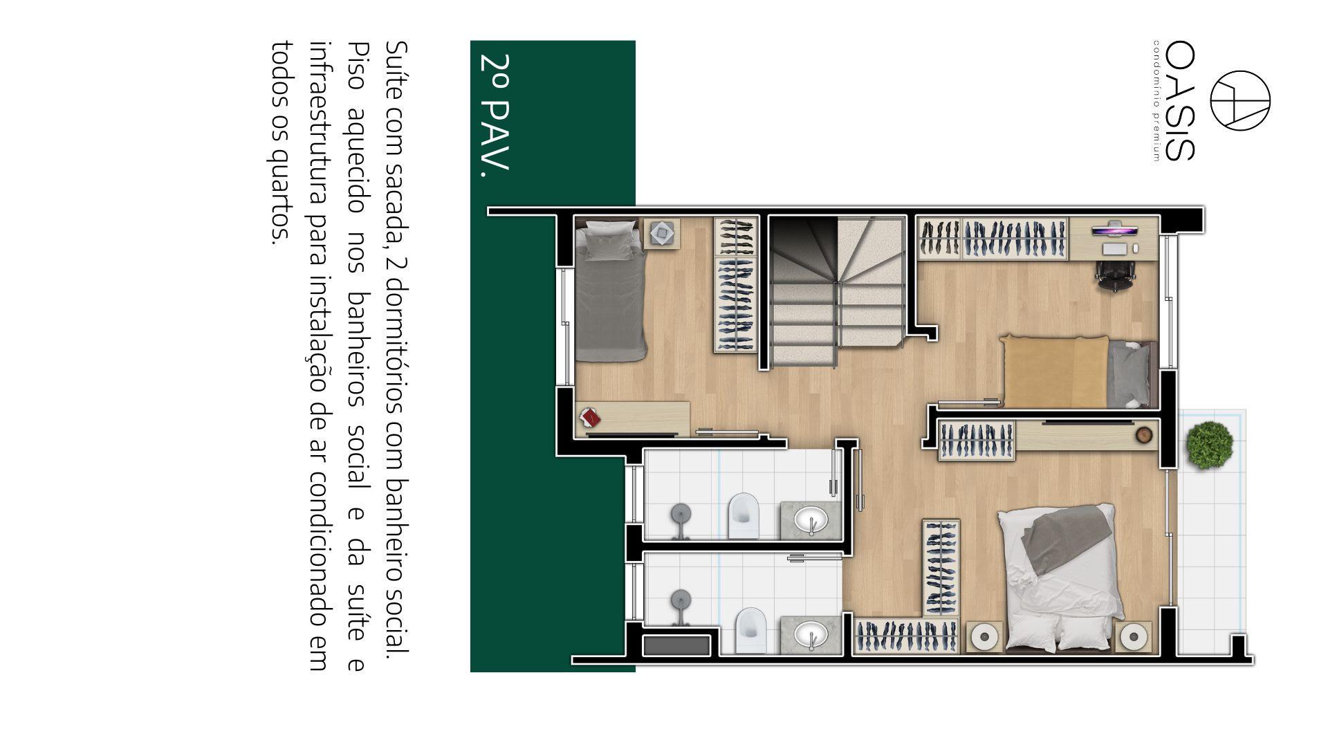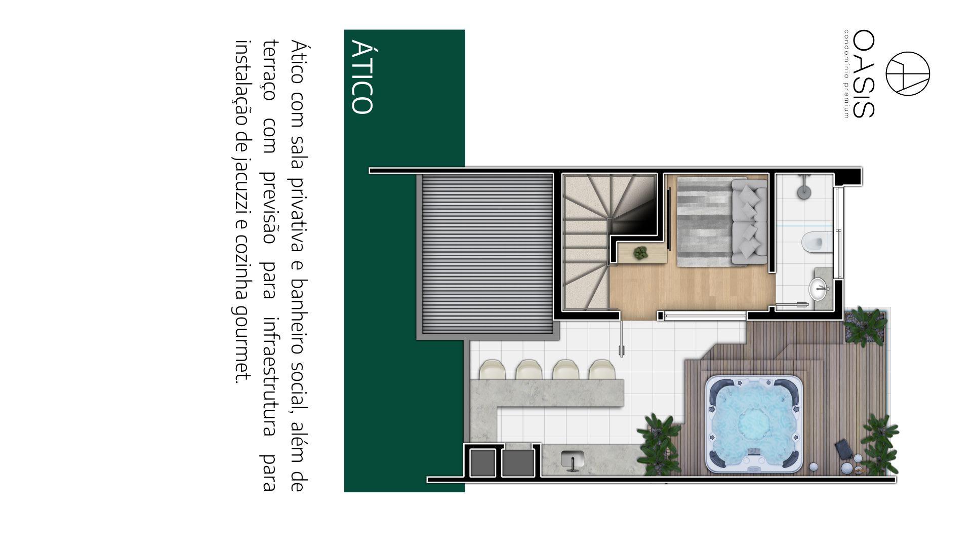 Todas as unidades tem 3 quartos, sendo 1 suite, sala e cozinha integradas, lavabo, lavanderia, 2 vagas de garagem, quintal, área para escritório ou sala de TV e terraço descoberto.