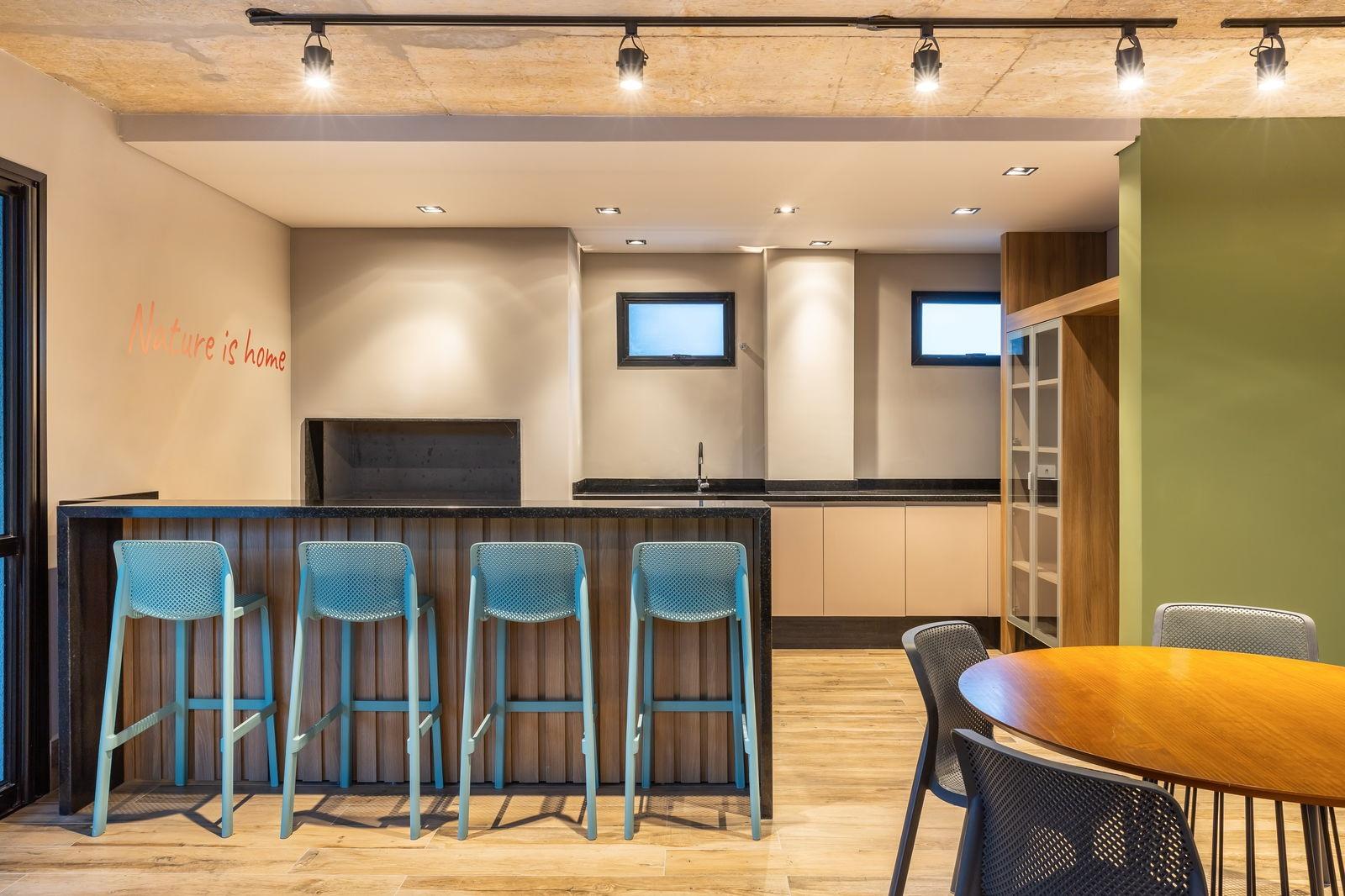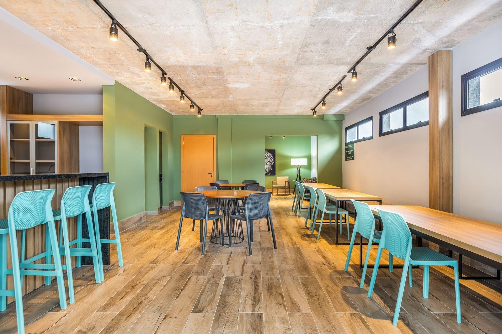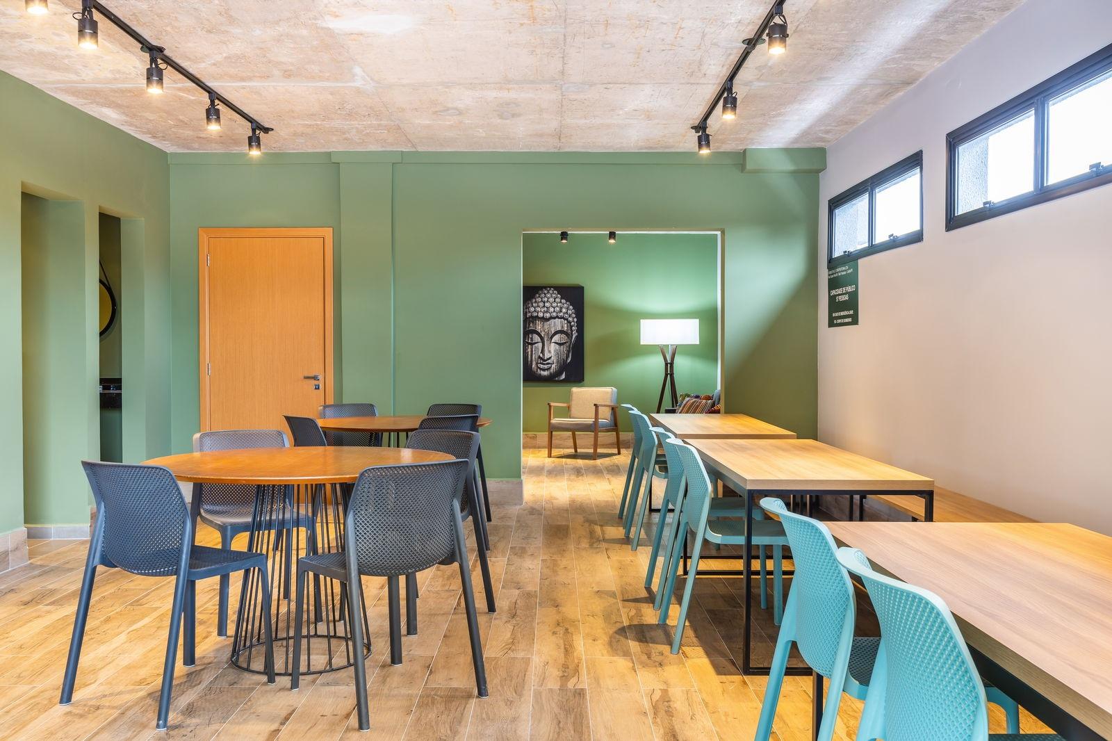 Unidade com fechadura com senha na porta de entrada e o condomínio bem completo com academia, bicicletário, elevador, espaço gourmet, guarita de segurança, hall de entrada decorado, interfone, internet, salão de festas, área de lazer no rooftop, sala de coworking, lavanderia Omo, portaria remota e vista panorâmica.