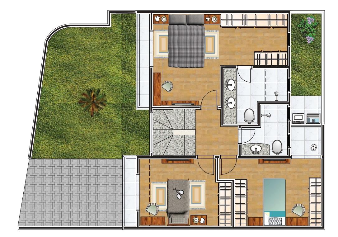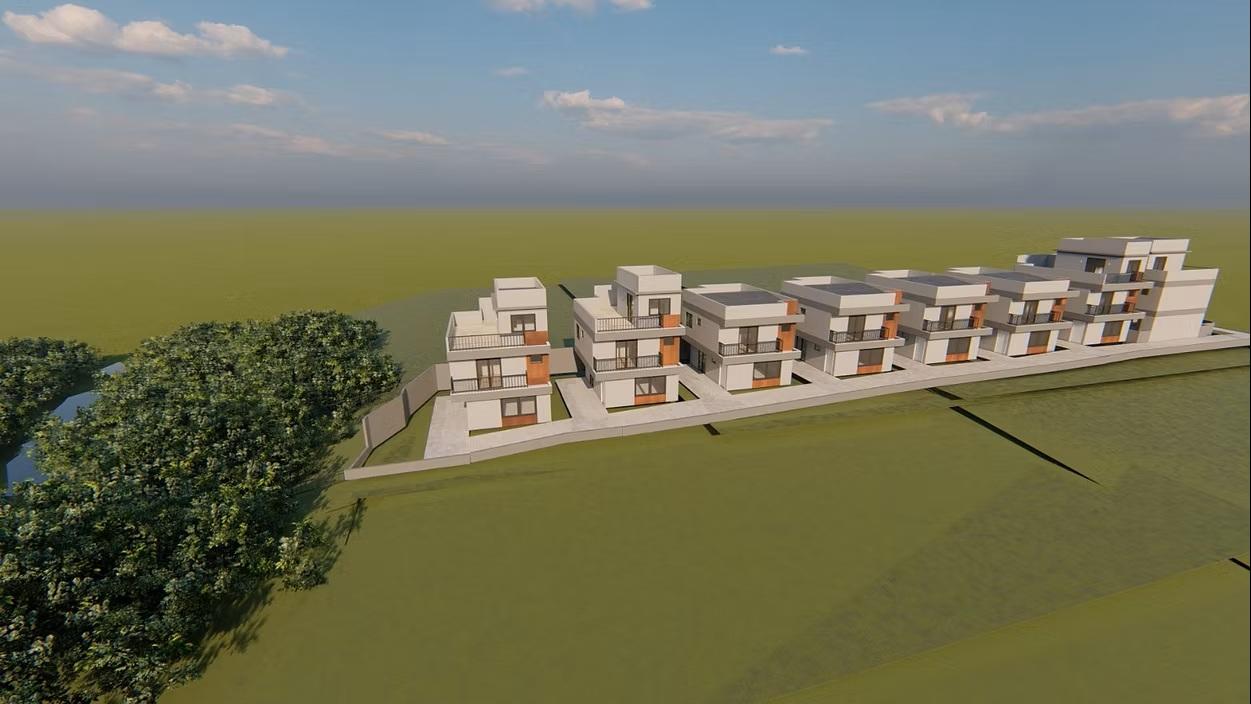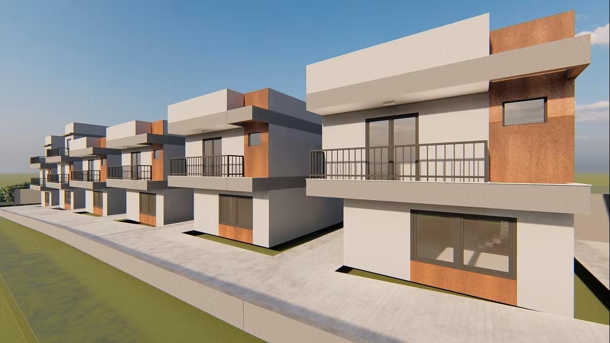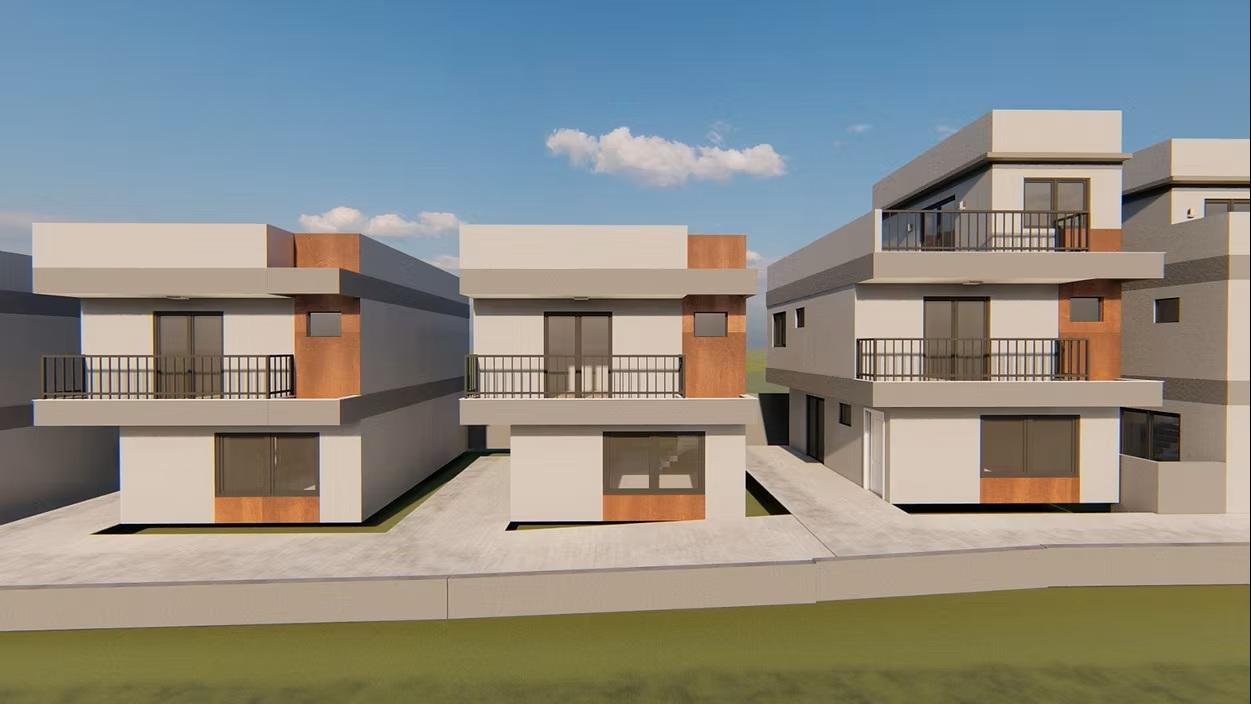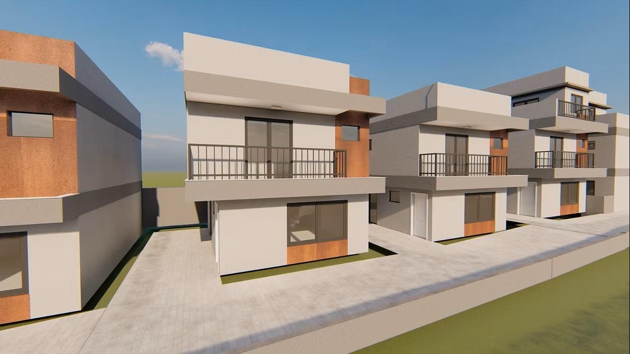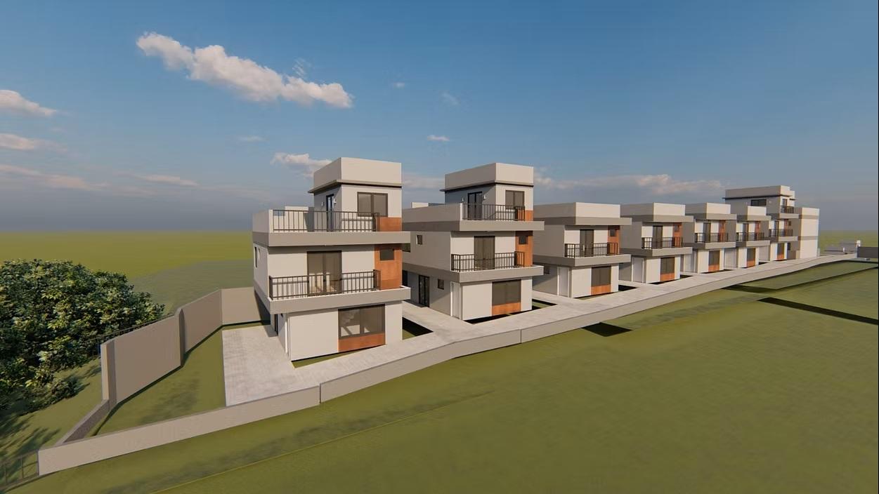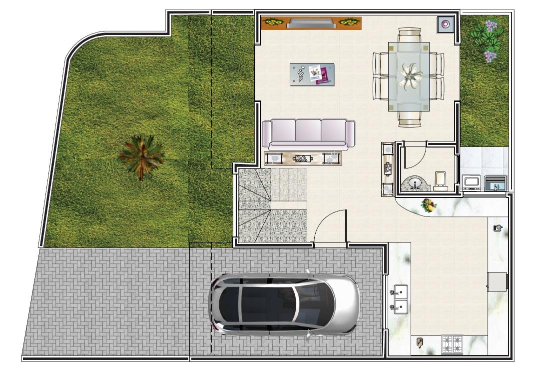 Sobrado triplex de frente para a rua em construção com 3 quartos, sendo 1 suite, sala ampla integrada com a cozinha em conceito aberto, lavanderia, lavabo, grande quintal gramado, 2 vagas, ático com sala de TV e terraço descoberto. São 161,71m2 de área construída e 54,70m2 de área descoberta, totalizando 216,41m2 privativos.